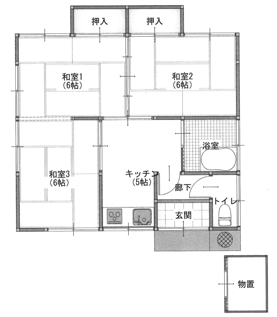 和室6帖×3・k5帖・水洗トイレ・風呂 |